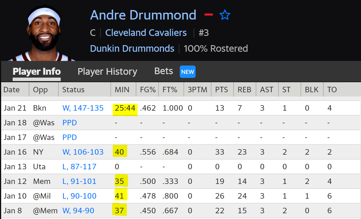 „### Cavaliers GM Koby Altman told Andre Drummond that his role in the rotation won’t change following the acquisition of Jarrett Allen.“