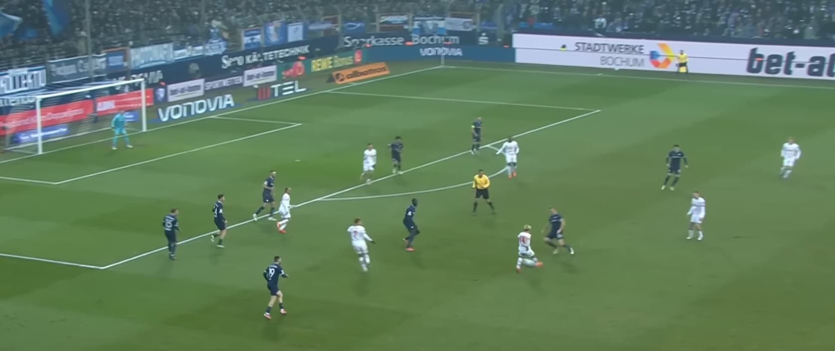 Das glaube ich nun wirklich nicht. Man sieht auf dem Bild ja gar nicht so das hinterste Körperteil (Fuß?) des Bochum-Verteidigers ist, aber dem Bild nach zu urteilen ist dieses auch recht deutlich hinter der Strafraumlinie. Dazu kommt noch die leicht schräge Perspektive, die es noch mehr pro Abseits aussehen lässt. Das ist ein sehr knappes Ding.