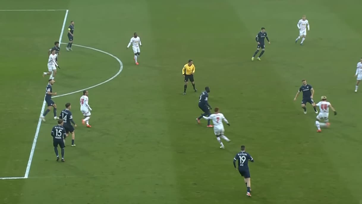 Selbst der Bochumer Verteidiger unten steht mit der Hacke auf der Linie und hebt damit schon bei ca. 50% der Körperfläche des Leipzigers das Abseits auf und der Verteidiger oben steht definitiv nochmal einen halben Meter weiter hinten.