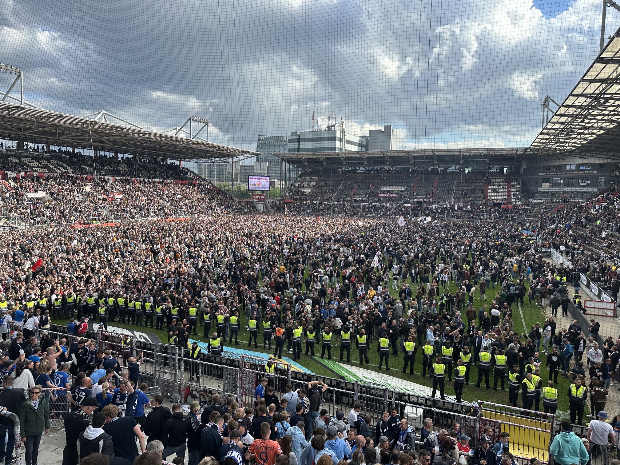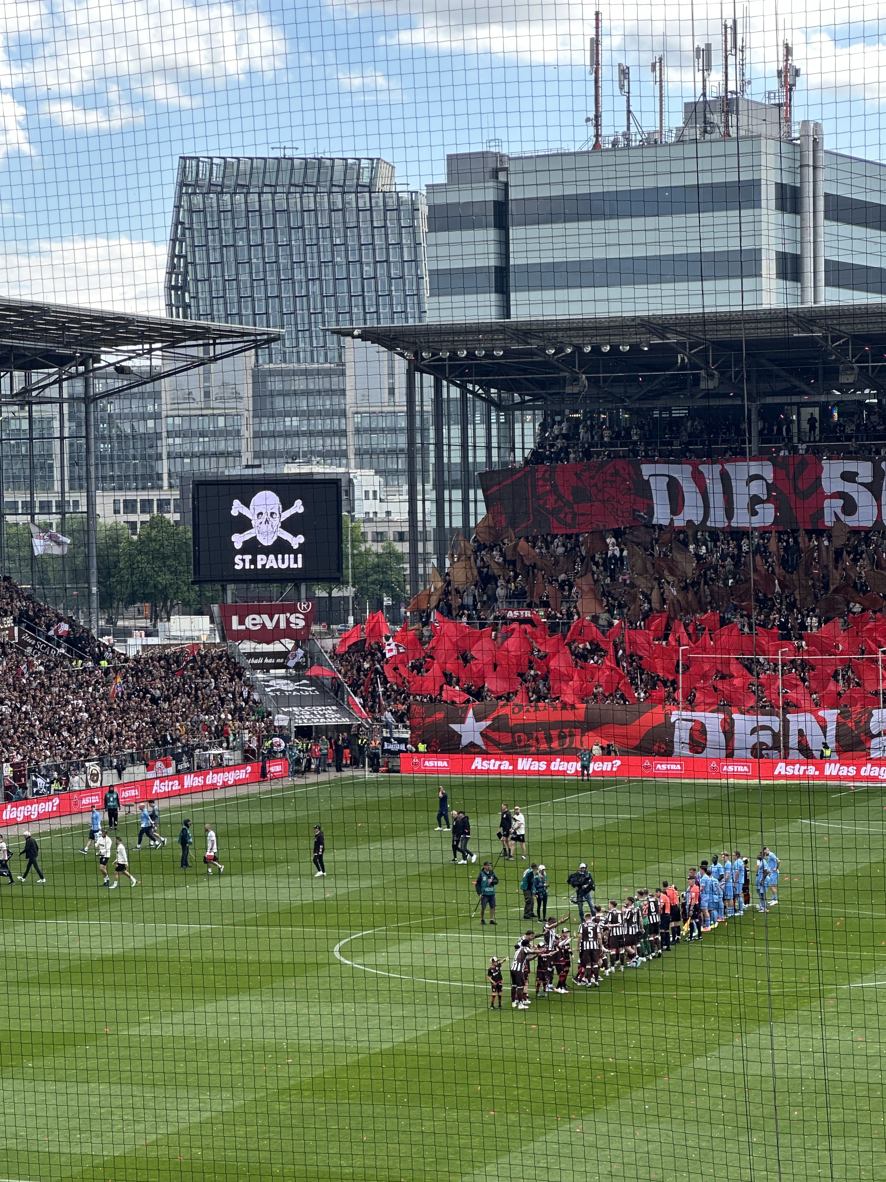 Am Ende kommen die Paulianer alle rüber zum Block und man ‘feiert’ gemeinsam mit Wechselgesang etc. Dass vor dem Spiel schon Grönemeyer lief hat mich erwischt, aber das Ende echt gekillt. Tschüss, Bundesliga. Viel Erfolg Pauli! Ihr seid die geilsten. Bester Verein.
