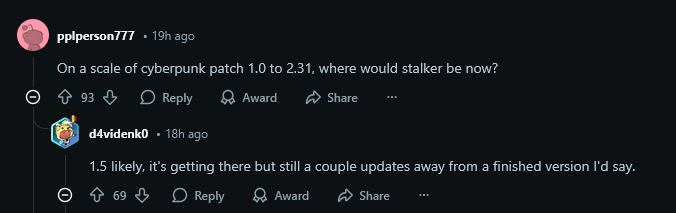 Nice, damit bekommt man dann auch die Version 1.0 mit integriertem Modsupport (kam neulich mit Patch 1.5). Die Devs waren bisher sehr fleißig und auch erste A-Life-Implementierungen und Offline-A-Life ist bereits in einer ersten Version drin.