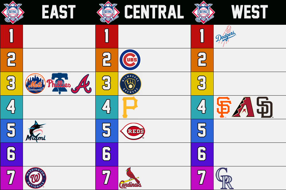 Kaum ein Team hat in der Offseason so viel Substanz verloren wie die Padres. Das ist umso ärgerlicher, weil man letztes Jahr fast die Dodgers vom Thron der NL West gestoßen hätte. Mit Dylan Cease, Reliever Robert Suarez, Luis Arraez und Ryan O’Hearn verlassen den Club in allen drei Mannschaftsteilen gute Spieler, gleichwertigen Ersatz gibt es erstmal nicht. Das Lineup ist mit Tatis, Merrill oder Machado weiterhin gut bestückt und der Bullpen zählt auch ohne Suarez zum Prunkstück der Padres, schwierig wird es aber beim Starting Pitching, wo man neben Michael King und Nick Pivetta kaum solide Leute hat. Für den Opening Day sagt Fangraphs eine Starting Rotation mit German Marquez und Walker Buehler voraus, was für einen Playoff Contender eigentlich ein No-Go sein sollte. Mit Joe Musgrove und Griffin Canning kommen im Laufe des Jahres noch zwei Starter zurück, aber hier ist ungewiss, ob beide an ihr altes Leistungsniveau anknüpfen können. Da das Farmsystem von den wilden Deadlines der letzten Jahre komplett leergefegt ist, kann man von dieser Seite auch keine Hilfe erwarten. Ich denke die Padres werden dieses Jahr die Playoffs verpassen.