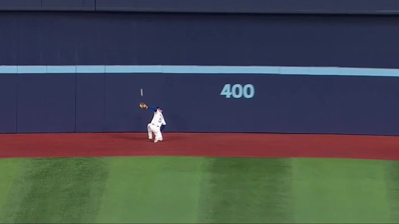 Scheint die Woche der spektakulären und gefährlichen Outfieldcatches zu sein. Immerhin hat er mehr Glück gehabt als Victor Robles. (8:21)