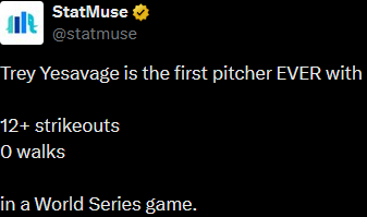Heute Nacht um 01:00 Uhr geht es ins Spiel 5. Das sind traditionell meistens die besten Spiele, auch wenn die Latte mit Spiel 3 natürlich schon sehr hoch liegt. Mit Trey Yesavage und Blake Snell werden die Starter aus dem ersten Spiel starten.