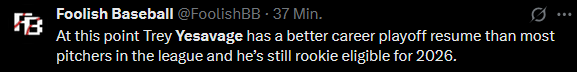Trey Yesavage - 104 Pitches in Spiel 5 - zwei Tage Rest. Ist verfügbar, aber wahrscheinlich nur im Notfall und nicht lange