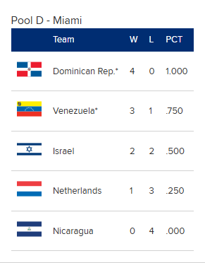 Insgesamt eine Gruppe mit zwei klaren Favoriten in der DomRep und mit Venezuela. Gleichzeitig haben auch Israel und die Niederlande etwas zu bieten, es braucht aber ein Wunder wie einst 2009, damit einer der beiden Teams in das Viertelfinale einzieht.