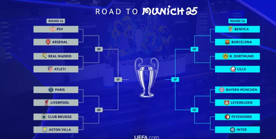 Und bis auf ein spanisches Finale, ist kein Finale mit zwei Mannschaften aus einem Land möglich, alles in allem doch ne gute Auslosung, wenngleich Bayer gegen Bayern abstinkt, dafür ist ein schäbiges Madrid mit Sicherheit raus und psg gegen Liverpool könnte auch interessant werden.