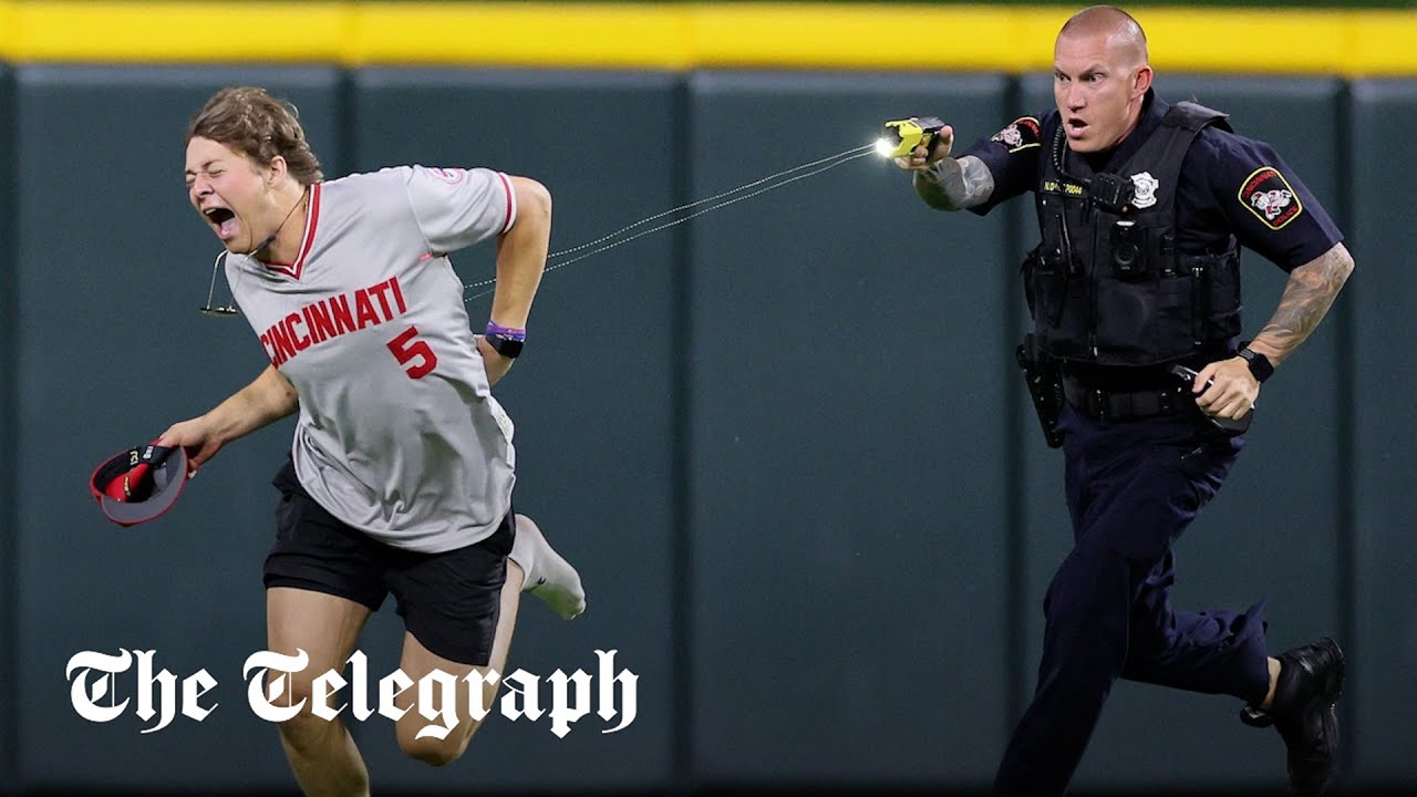 Nur in Amerika. Taser gegen Flitzer. Immerhin hat der Cop seinen Hut verloren. Da kann der junge Mann froh sein nicht erschossen worden zu sein.