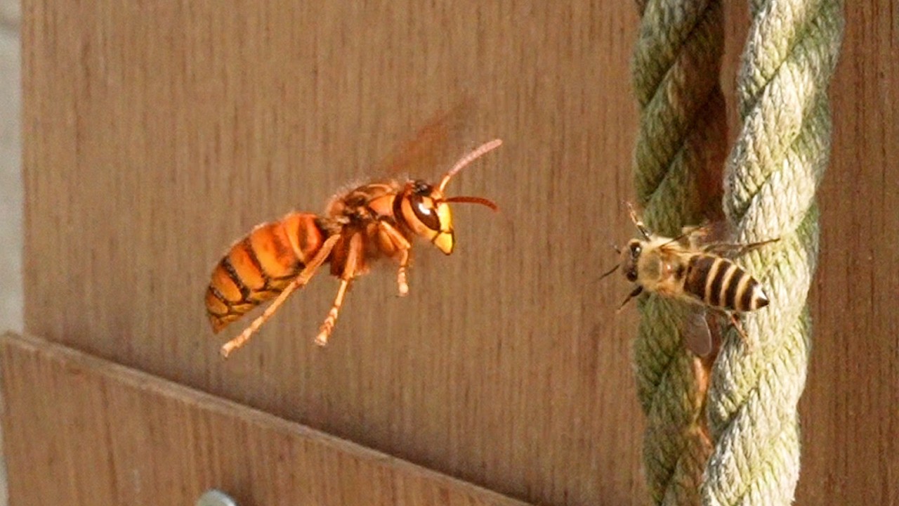 Sieht zu Beginn nach einem leichten Spiel für die Hornisse aus. Bis eine mutige Biene anfängt, sich zu wehren.