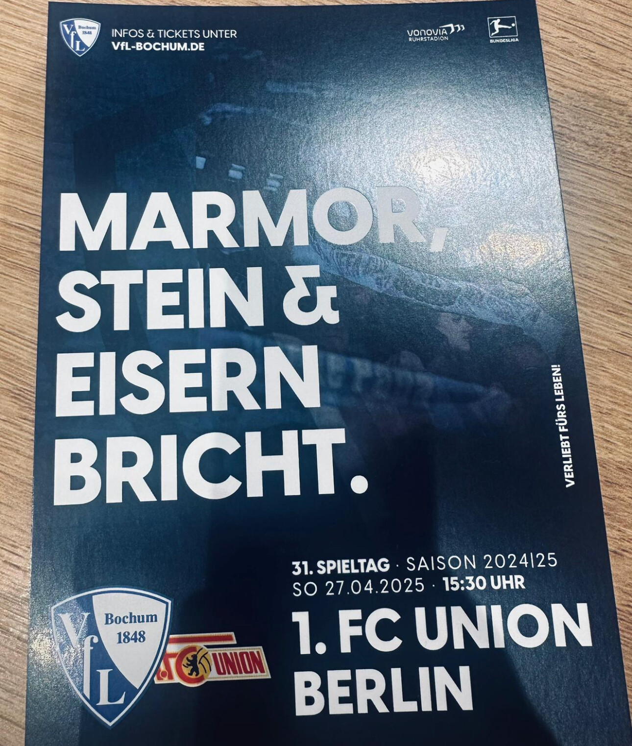 Morgen gegen den Berliner Clownsverein noch einmal alles geben, alles reinhauen. Maiabendfest, Sondertrikot, volles Haus, Situation aus dem Hinspiel, Gegner bereits gerettet (lol), gegnerischer Trainer Bochum-Fan. Ansonsten direkt für die 2. Liga planen und Tore abschliessen.