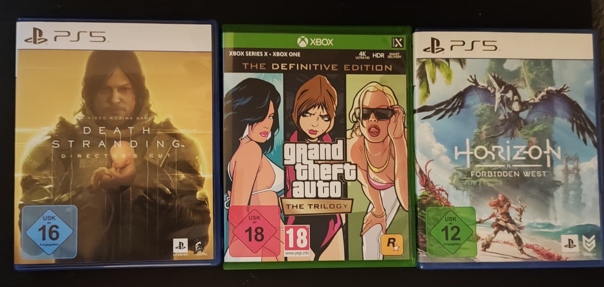 War mal wieder etwas shoppen. DS hatte ich damals nie durchgezockt, der Directors Cut ist da eine schöne Gelegenheit, noch mal zu beginnen. Horizon hat mich nicht komplett umgehauen, war aber ein schönes Spiel, daher jetzt endlich mal den Nachfolger zocken. Tja, und die kaputte und verbuggte GTA Trilogy, einfach weil ich so Bundles aus älteren Games mag und 15€ immer noch fairer finde (ich selber hatte zumindest noch keine Bugs, toitoitoi), als 60€ für die MGS Collection, die superschlechte Ports abliefert.