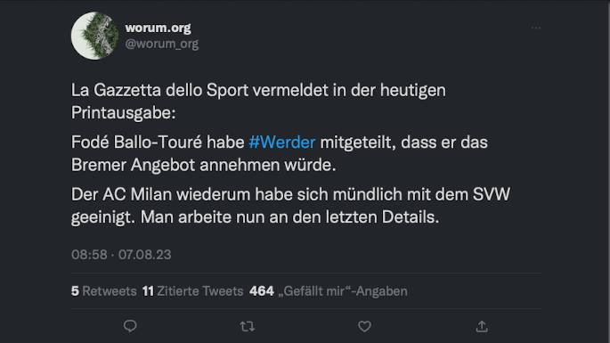 https://twitter.com/werderbremen/status/1688857638556045312?s=61&t=j62bOOLJDacTXDu39RWYDg