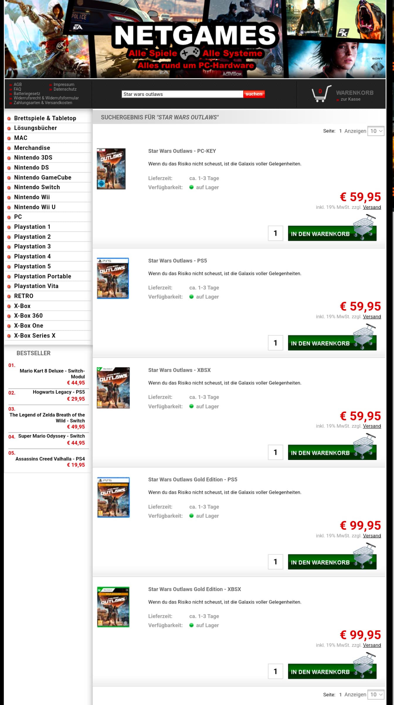 Und Netgames in Gera (Thüringen) aber auch online bestellbar, bietet es noch günstiger an. Ist dann aber die PEGI und nicht USK Version.